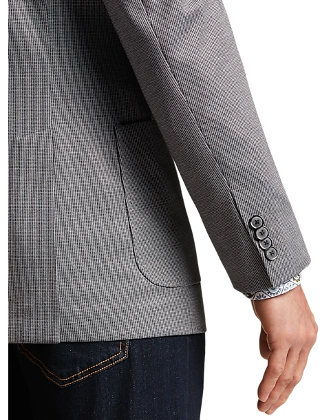 Before you head out, slip on this handsome sport coat for that winning look. In a gray tic, this coat features a notch lapel, two-button closure and patch pockets. 3/8 lined.