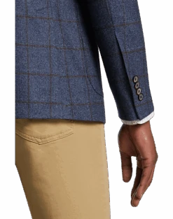 - 79% polyester 18% viscose 3% spandex|Peak lapel|Double-breasted|Two-button closure|Side vents|3/8 lined|Slim Fit|JOE Joseph Abboud|
