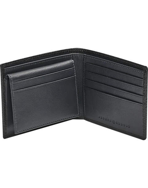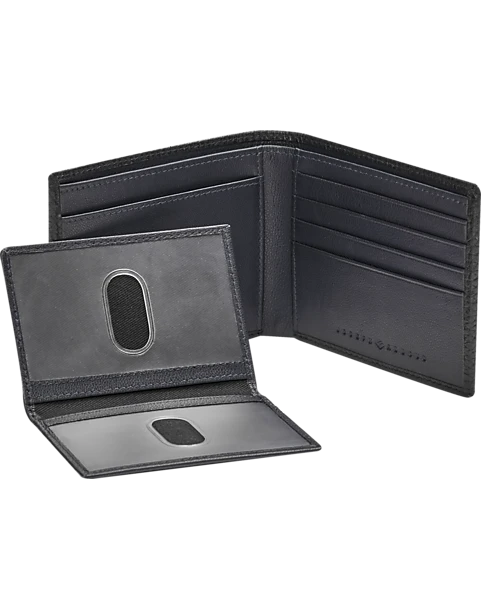 Rich, pebbled leather with pick-stitched edging add character and style to this slim, bi-fold wallet by Joseph Abboud.