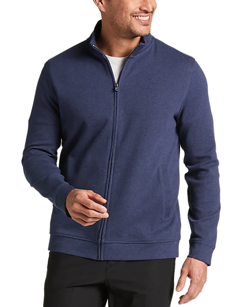 The perfect layering piece for laid-back looks, this Joseph Abboud sweater is woven from a breathable cotton blend. Styled with a mock neck and full-zip closure, its Modern Fit is flattering.