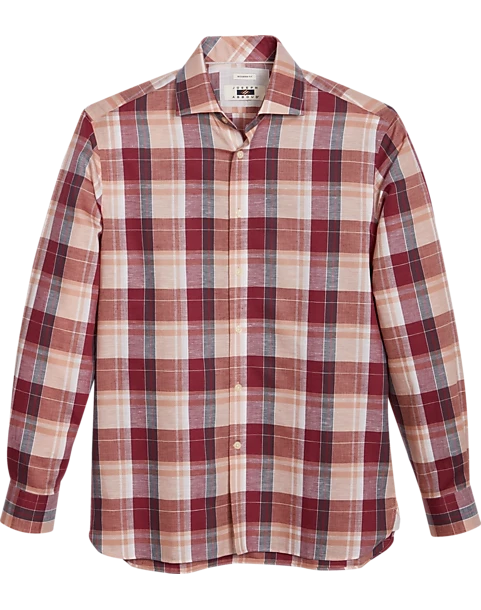 Brighten your day with a bold Madras plaid pattern. This fine Joseph Abboud sport shirt features a crisp spread collar, soft 100% cotton, and a trim, Modern Fit