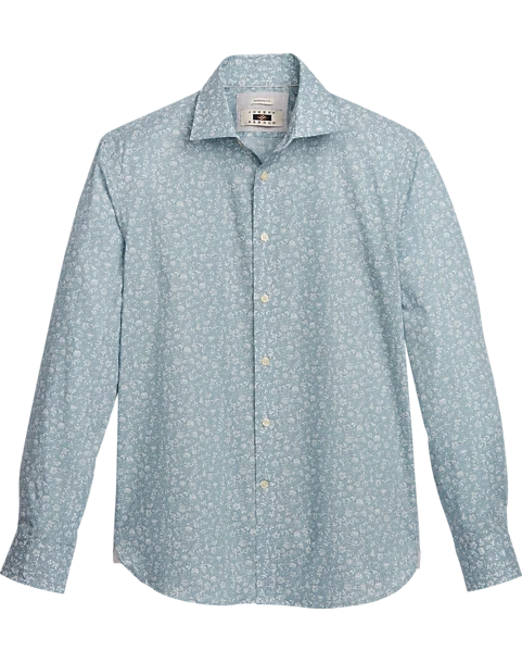 Good looks are yours with this handsome, fossil-leaf print shirt from Joseph Abboud. The quality, woven-cotton shirt will become a staple of your everyday wardrobe.
