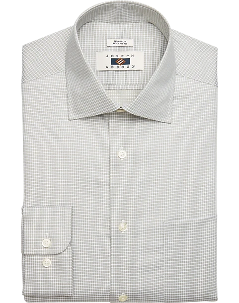 Give your dress shirt rotation a new point of view with this one from Joseph Abboud. Tailored from crisp cotton with a non-iron finish, it features a tonal grid pattern in a springtime hue. Modern Fit is close-fitting without being constricting through the chest, body, and sleeve. Recommended for more rectangular body types (shoulders aligned with hips, with the waist slightly smaller).
