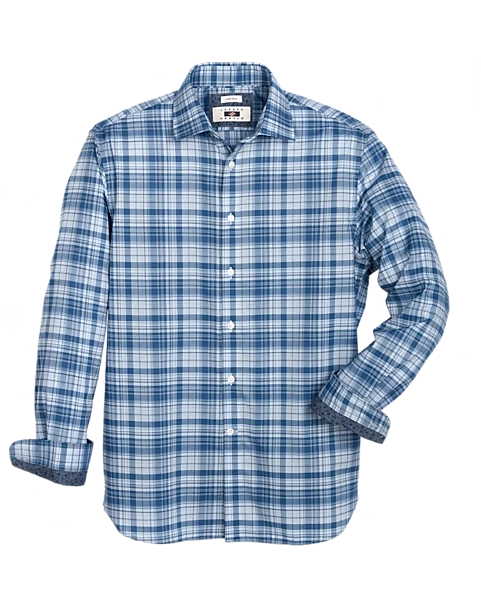 Ruggedly handsome, this woven cotton sport shirt from Joseph Abboud features a plaid pattern with contrasting cuffs.