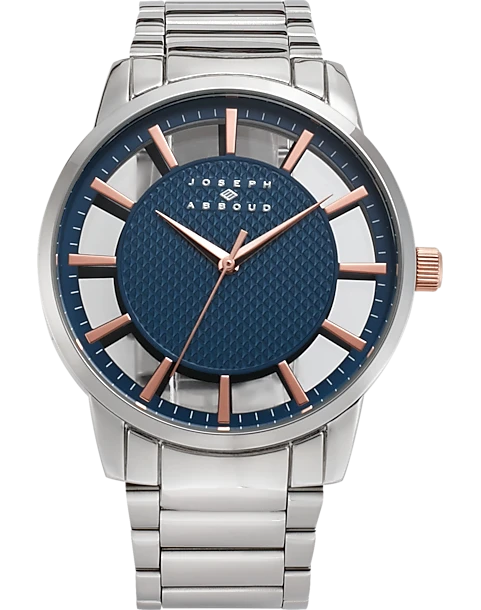 - Silver-tone metal|Stainless steel back|Analog|Rose goldtone accents|Joseph Abboud|
