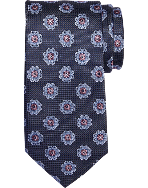 This fine silk tie by Joseph About features a contemporary medallion motif for a traditional touch with a modern update.